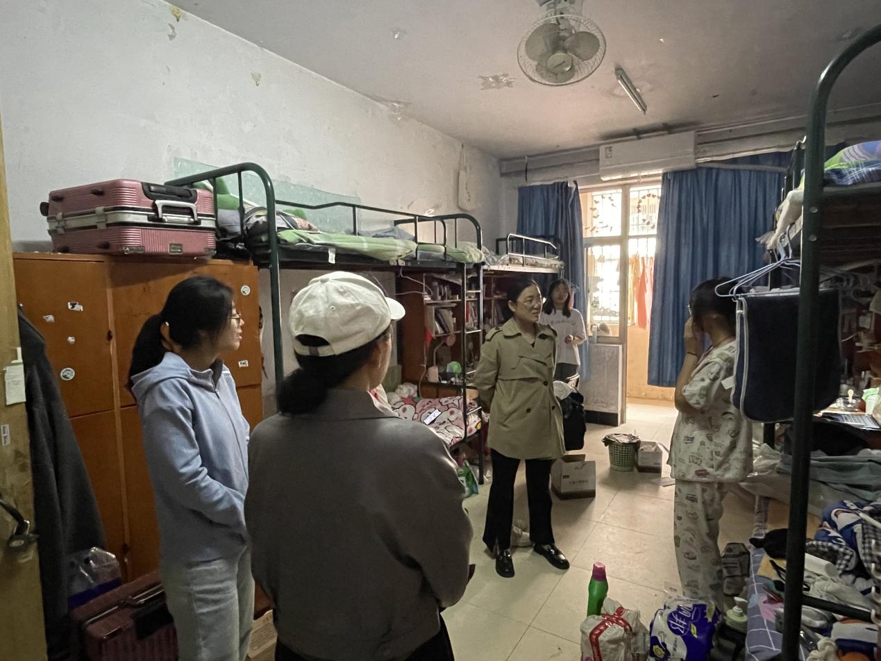 为加强校园安全建设,防患于未“燃”,营造安全、整洁、文明、舒适的安全环境,4月30日上午,beat365官方网站党委副书记公金梅带领各班辅导员深入学生宿舍、教室,进行安全隐患排查及宿舍卫生整顿工作。