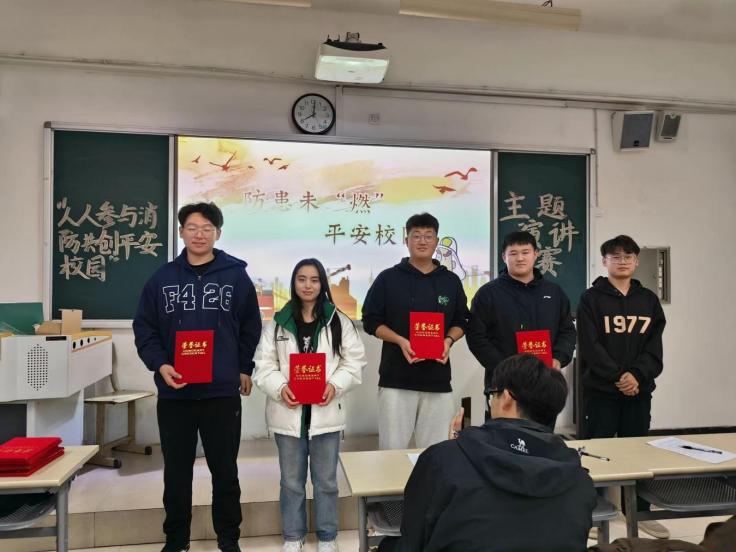 演讲比赛中,参赛选手紧扣消防安全主题从“火灾来临前的防范”“火灾中的自救”“火场逃生技巧”等多方面阐述消防工作的重要意义。他们通过案例、视频、谚语和小故事讲述了火灾险情起因与危害,以此警示同学们注意用火用电安全,牢记消防安全责任,同时也表达了对消防工作人员的敬佩与感激。经过激烈角逐,比赛共评出一等奖1名,二等奖1名,三等奖2名,现场颁发证书并合影留念。