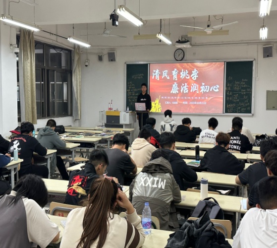 活动伊始,各班主讲人首先学习传达了《beat365官方网站新时代廉洁文化建设系列活动实施方案》文件精神,强调了廉洁文化建设的重要意义。接着,主讲人以图片展示、视频演示等形式,引领同学们了解廉洁的内涵、廉洁的重要性、腐败的危害等内容,并结合违规违纪违法反面典型进行以案说法,教育引导同学们要从典型案例中吸取教训,严守底线,自觉抵制失范行为,树立正确的世界观、人生观、价值观,用自己的实际行动共同营造风清气正的学习环境。