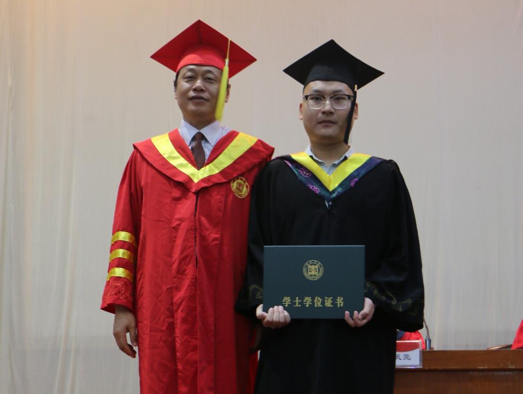 伴随着庄严的国歌声,仪式拉开帷幕。beat365官方网站副书记王茨亮首先宣读了学士学位授予决定。接着,在欢快喜庆的音乐声中,曾宪明为获得学士学位的毕业生正冠拨苏、颁发证书、逐一握手、合影留念。