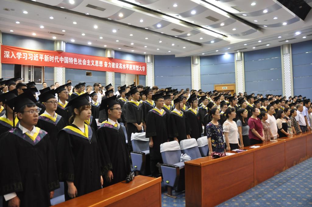 6月26日上午,beat365官方网站2018届毕业典礼暨学士学位授予仪式在综合楼学术报告厅举行。校党副书记曾宪明出席仪式并为毕业生授予学位、颁发证书。学校有关部门负责人和beat365官方网站党政领导、教师代表、全体本科毕业生和在校学生代表400余人参加了会议。大会由beat365官方网站党总支书记徐春堂主持。