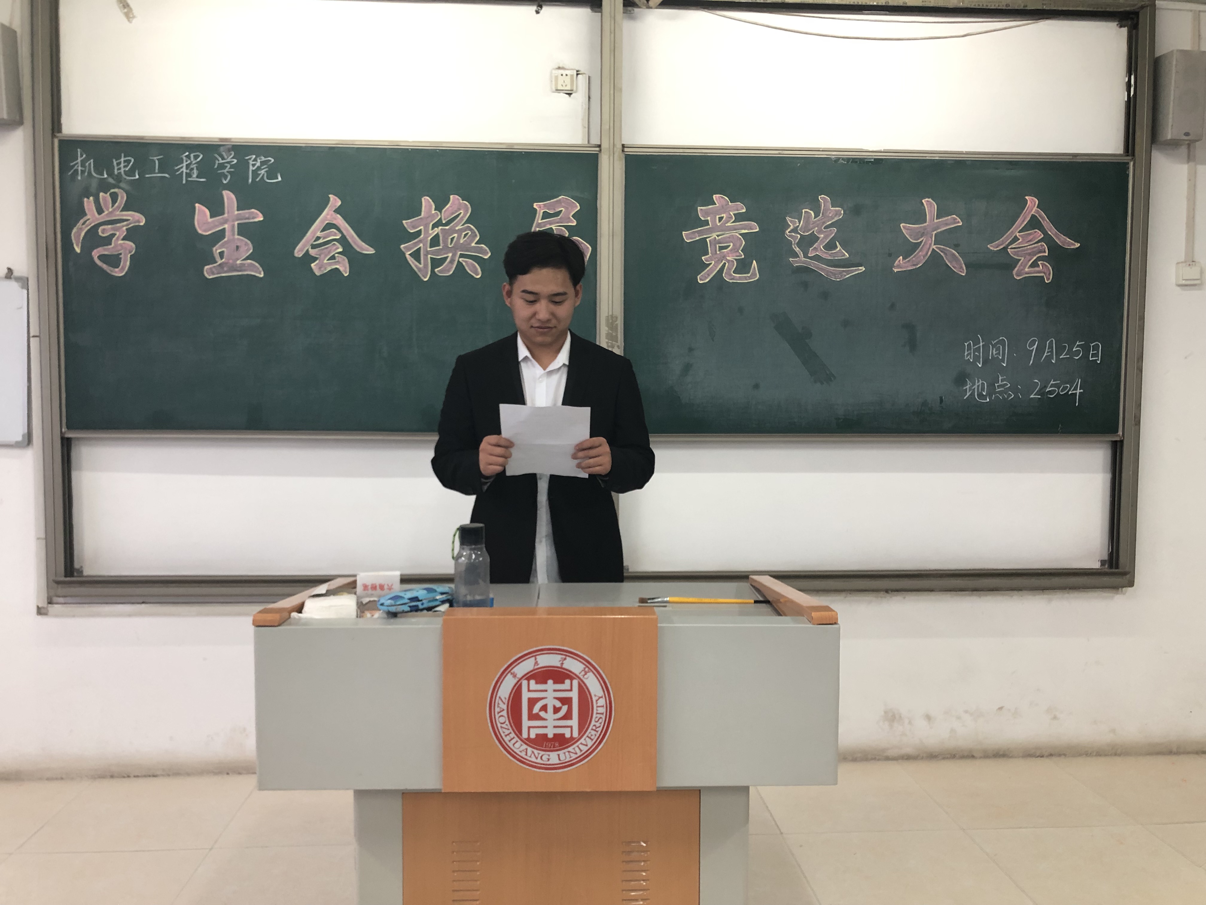 会议伊始,刘东对第八届学生会各部门的工作表示了肯定和感谢。随后,各部门竞选代表依次上台对自己在学生会的成长所得、竞选优势及未来工作计划进行了阐述,现场气氛十分热烈,精彩演讲博得了大家的阵阵掌声。候选人演讲结束后,刘东对大会做总结讲话,要求各学生干部要继续在学习、工作、生活中发挥模范带头作用,在既有成绩上开拓创新,锻炼提升自我,保持学生干部先进性。