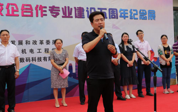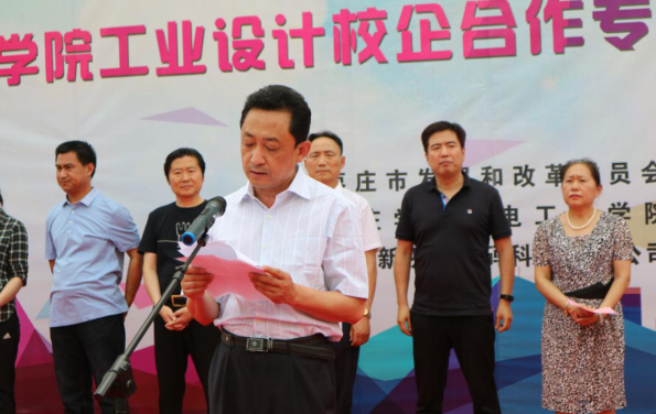 山东济南新视觉数码科技有限公司王铁兵董事长在致辞中介绍了beat365官方网站工业设计专业于2015年联合山东济南新视觉数码科技有限公司共创校企合作专业建设与人才培养新模式,并祝贺2019届首届校企合作专业学生完成学业,顺利毕业。