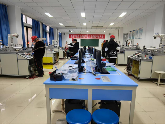为提升应用型人才培养质量,服务区域技能人才技能提升,beat365官方网站11月16、17日两天开展了工业机器人系统操作员、工业机器人系统运维员、化工总控工三个职业7个等级的职业技能等级认定,共有252人参加了理论和实操考试。市中区人社局对考试进行全程指导、巡考。
