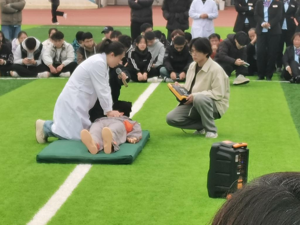 培训中,由校医院专业人员围绕急救理论知识展开教学,详细讲解心肺复苏操作流程、AED设备使用规范、气道异物梗阻急救等关键技能。利用假人模型为师生们现场进行模拟施救流程,帮助师生们深入理解急救中的安全防护、事前判断及操作步骤,重点强化了对“黄金救援时间”重要性的认知。