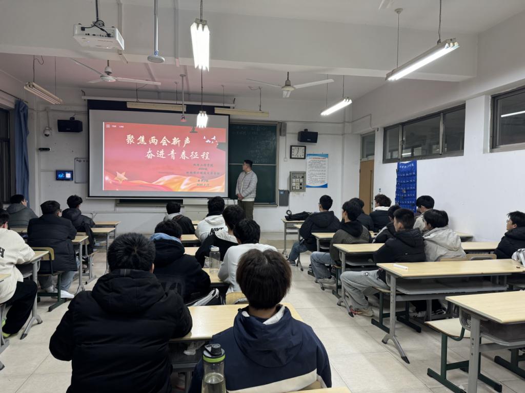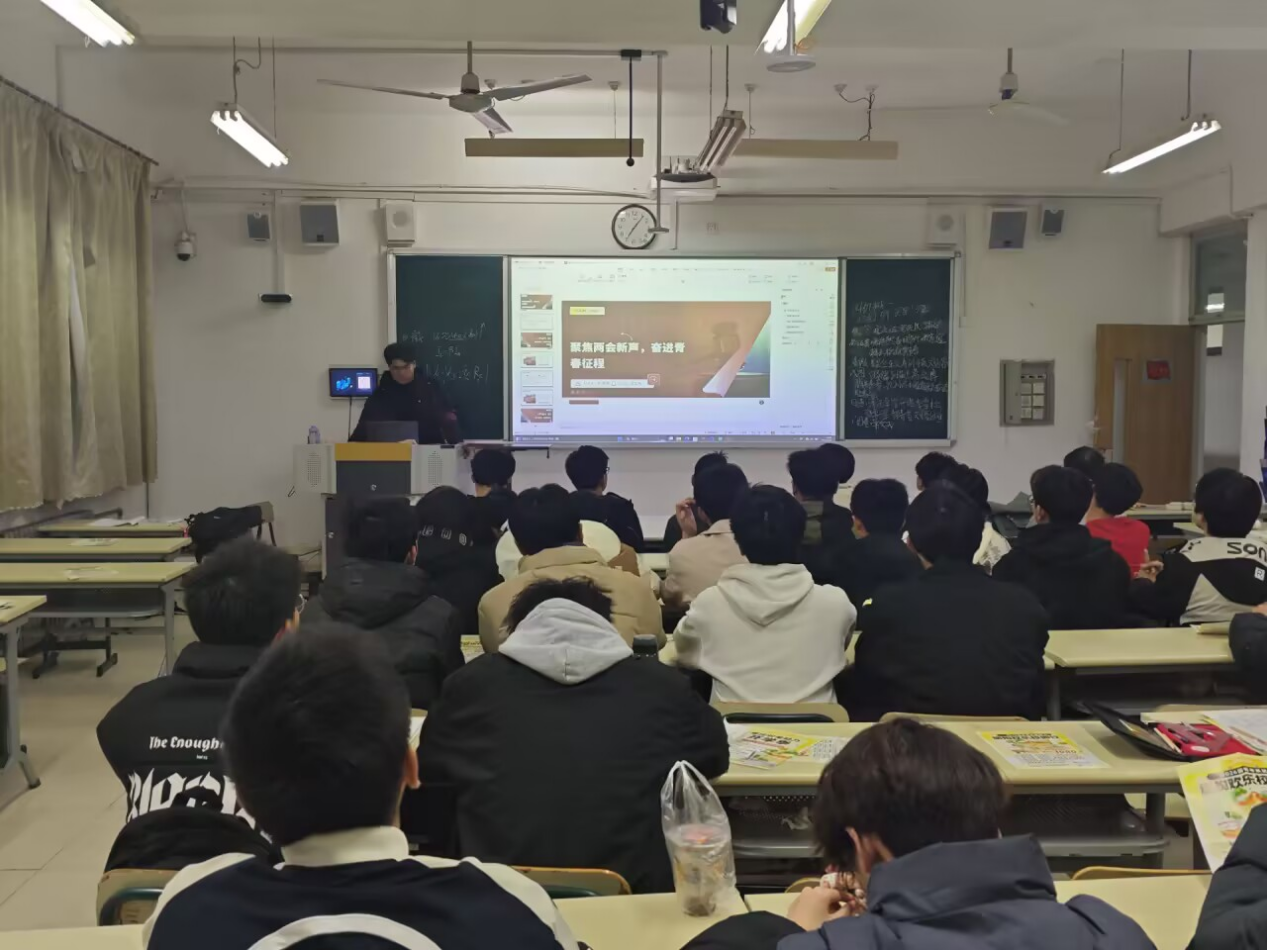 活动伊始,主讲人带领同学们共同观看了两会专栏系列视频,深入学习习近平总书记两会重要讲话等内容。随后,主讲人为同学们详细解读了两会的重要议程、政府工作报告的关键要点,以及两会对国家发展和民生改善的深远意义。