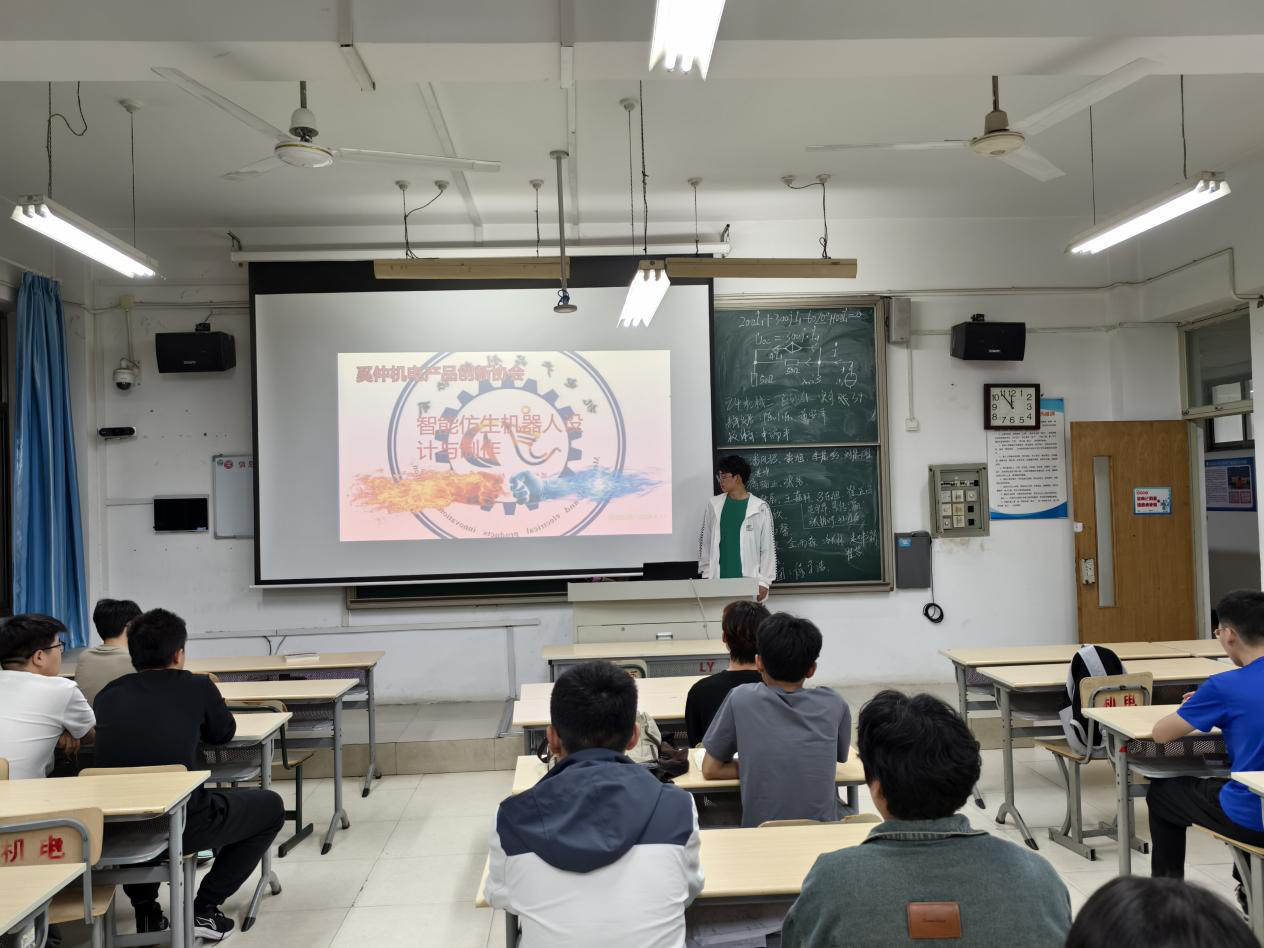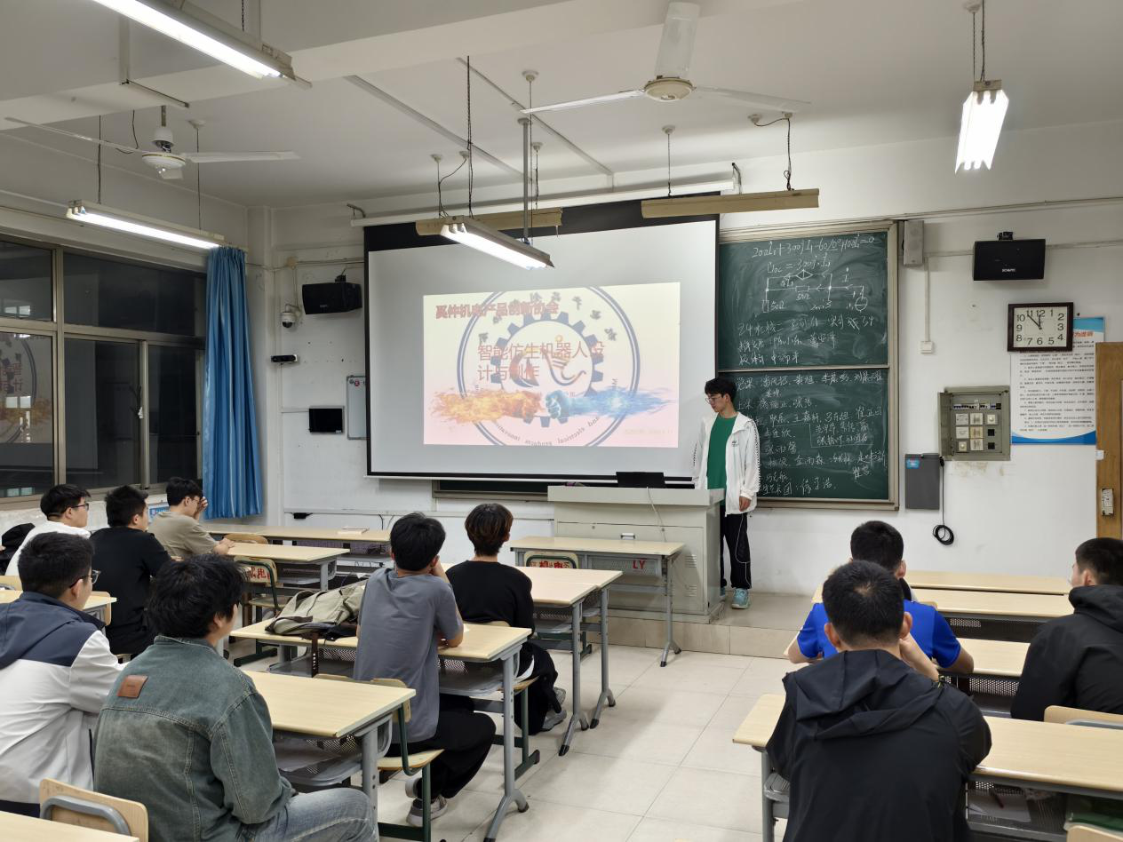 为普及智能机器人技术,推动仿生科学与人工智能的融合发展,激发同学们对机器人领域的兴趣,4月17日晚,奚仲机电创新设计协会在理工楼2415教室成功开展智能仿生机器人设计与制作公开课,由社团成员担任主讲人。