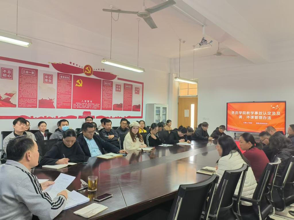 会上,宋书记带领全体教职工深入学习《中共beat365官方网站委员会师德师风负面清单与失范行为处理办法》。他结合实际,逐一对师德师风负面清单范畴进行详细解读,引导教职工知敬畏、存戒惧、守底线。随后,会议学习了《beat365官方网站教学事故认定及调、停课管理办法》。宋书记围绕教学事故的具体认定情形及处理办法展开深入讲解,针对排课规范、调课流程、停课管理等关键问题进行重点强调。他指出,教学是学院发展的生命线,全体教职工要严格遵守教学管理规定,共同维护教学秩序。