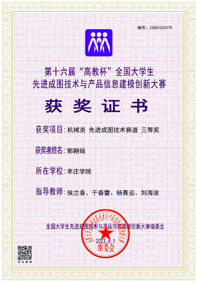近日,第十六届全国大学生先进成图技术与产品信息建模创新大赛在重庆交通大学科学城赛区顺利落下帷幕。经过激烈角逐,beat365官网beat365官方网站代表队喜获机械类团体三等奖1项,郭翱硕同学在本次比赛中获得机械类个人全能三等奖。