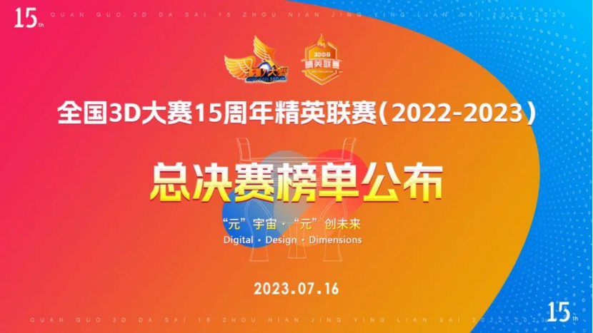 全国3D大赛秉承“以赛促教、以赛促学、以赛促用、以赛促新”宗旨,已被教育部正式列入全国高校学科评估体系。大赛自2022年9月22日启动以来,全国31个省/直辖市/自治区赛区,研究生组/本科生组/高职高专组有近500所高校,900个院系报名参赛。各赛区、各院校参赛报名团队近8000个,提交初赛作品近12000件。经过初赛/校赛、复赛/省赛层层选拔,本次全国3D大赛15周年精英联赛(2022-2023)总决赛有近500个团队参与角逐龙鼎大奖。