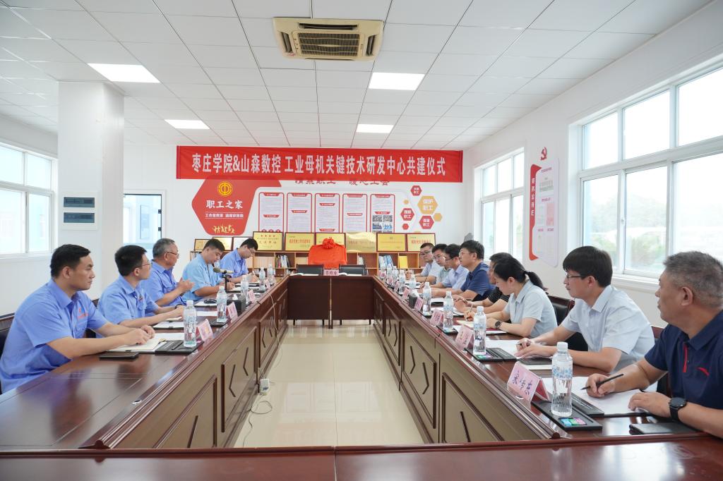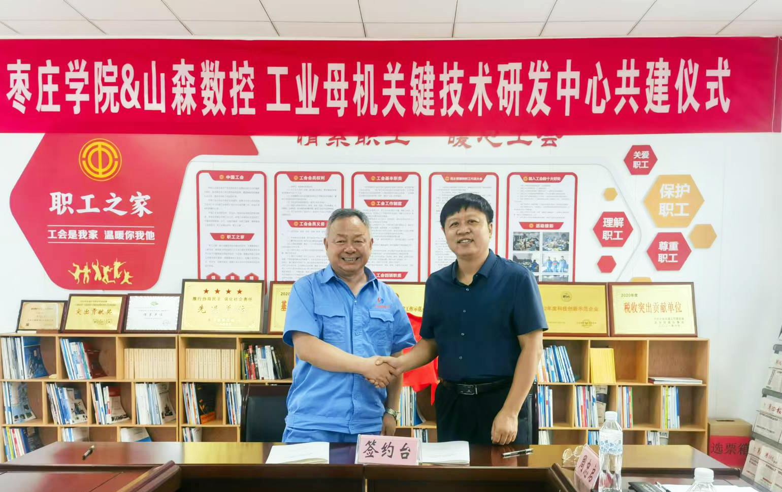 8月1日上午,beat365官方网站-山森数控联合共建“工业母机关键技术研发中心”签约仪式在山东山森数控技术有限公司举行举行。校党委委员、副校长李目海,山森数控董事长张士银及公司相关人员,科技处、beat365官方网站、信息科学与工程学院、光电工程学院负责同志和部分教师代表参加活动。