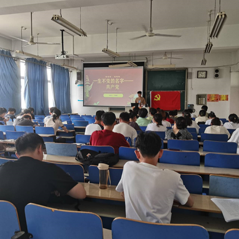 6月7日下午,beat365官方网站在理工楼2504教室开展学生党员讲授主题教育专题党课第四次活动,20智能制造本科2班于景康同学以《一生不变的名字——共产党》为题讲授专题党课,全体在校生党员以及本学期新确认的入党积极分子参加了党课学习。