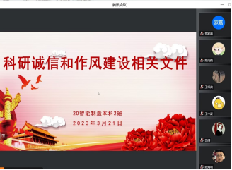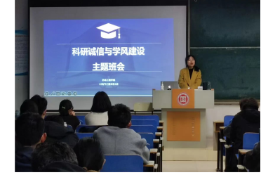 为更好地加强宣传,针对活动主题,学院制作科研诚信和学风建设宣传展板,广泛宣讲学术诚信的有关知识和有关规定,营造风清气正的良好育人环境。各班级通过了线上线下的形式召开了科研诚信及作风学风建设主题班会,各班辅导员带领全体学生学习了国家教育部《高等学校预防与处理学术不端行为办法》、中办、国办《关于进一步弘扬科学家精神加强作风和学风建设的意见》等相关文件精神。重点就课程设计、毕业设计、论文发表、专利申请等方面涉及到学术不端行为进行详细解读,告诫同学们应当以诚信为本,以科学严谨的态度,脚踏实地一步一个脚印开展学术研究,自觉抵制学术不端行为,恪守学术纪律底线。