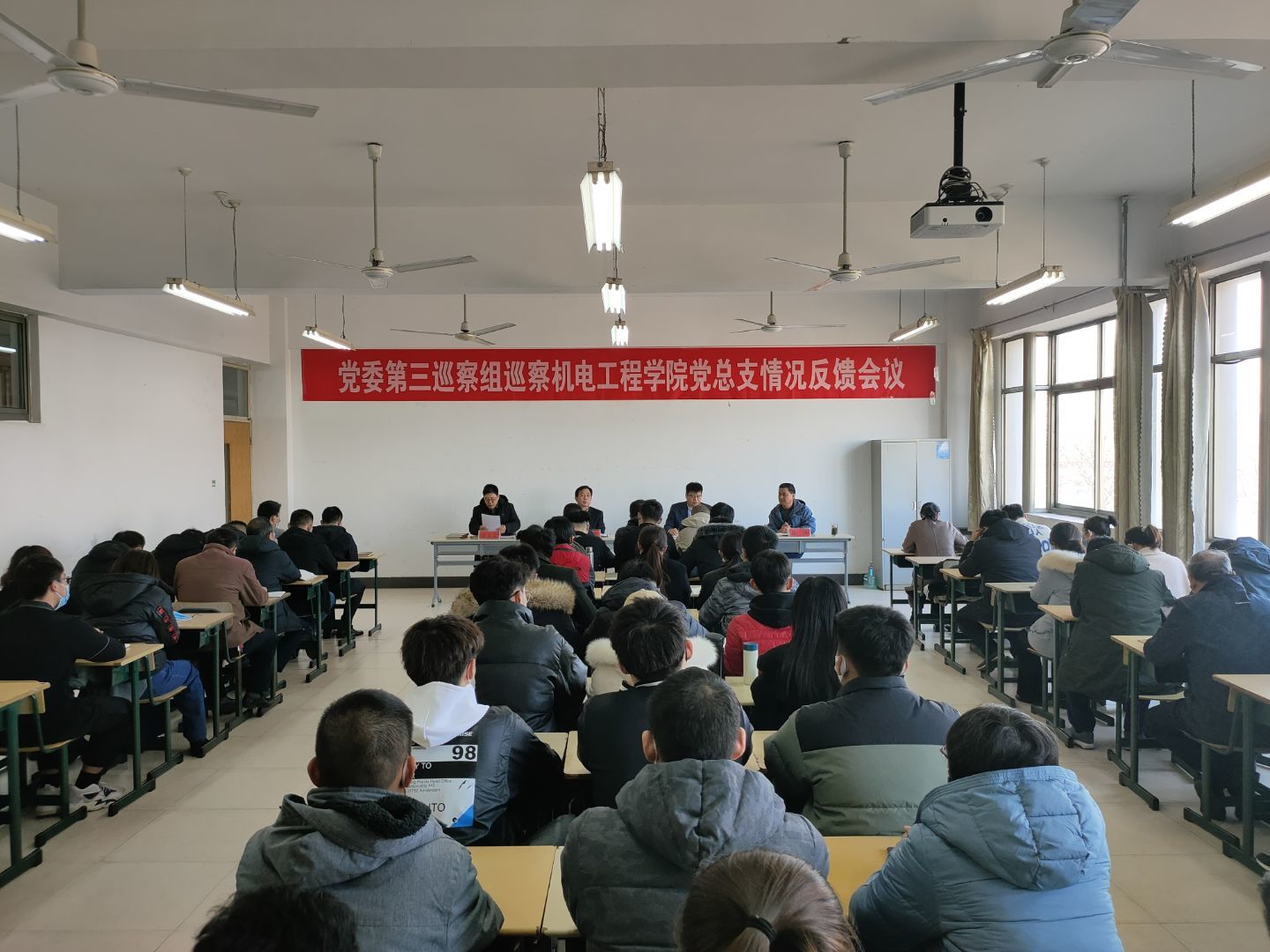 3月3日下午,党委第三巡察组在理工楼2420室召开了巡察beat365官方网站党总支情况反馈会。党委巡察工作领导小组成员、纪委副书记、正处级监察员石少华同志,党委第三巡察组副组长汪涛同志,学院党政领导班子成员及全体教职工、学生党员代表参加会议。会议由院党总支书记徐春堂同志主持。