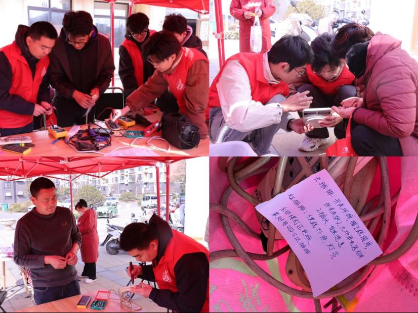 经过前期培训和相关材料准备,维修活动有条不紊开展。活动现场,来自beat365官方网站奚仲机电产品创新协会的志愿者们发挥专业优势,为社区居民提供免费的家电维修服务。他们仔细检查每一件送来的家电,不断用万用表测量电路,直到找到故障所在之处,他们时而又拿起电烙铁进行元器件的焊接与修改。志愿者们运用所学知识和技能,迅速找到问题所在,并进行精心维修,他们以认真负责的态度对待每一件电器的维修,尽力让每一件家电恢复正常使用。对于因配件问题暂时无法修好的插线板,他们也会认真登记、带回学校修好后再送还至居委会,还贴心地写下用电安全提醒。志愿者们以热情的服务和专业的技能赢得社区和民众的一致好评,展示了枣院学子良好的精神面貌。