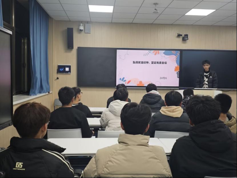 活动伊始,各团支部通过知识讲解、视频学习、研讨座谈等形式,使同学们深入了解了国家宪法日的设立背景及其深远意义,同时详细学习了宪法的基本内容和发展历程,围绕宪法的历史意义、现实作用和公民的义务与权利展开激烈讨论,深入剖析宪法作为国家根本大法在我国政治、经济、文化和社会生活中的核心地位和重要作用。活动中,同学们积极参与,认真听讲,展现出了高度的政治热情和法律意识。