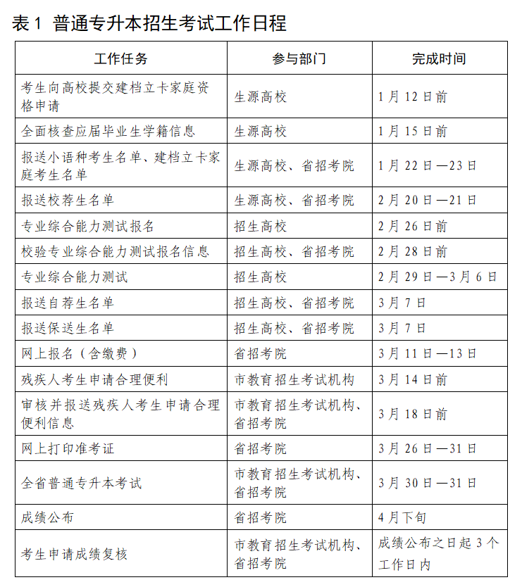 附件2:山东省2024年普通专升本招生考试工作日程表
