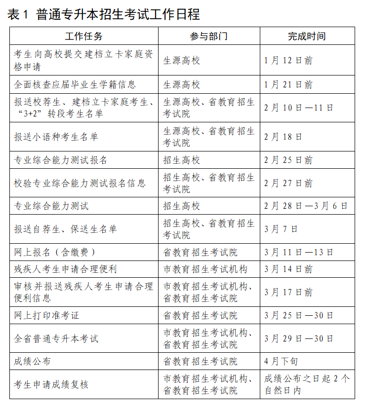 附件2:山东省2025年普通专升本招生考试工作日程表