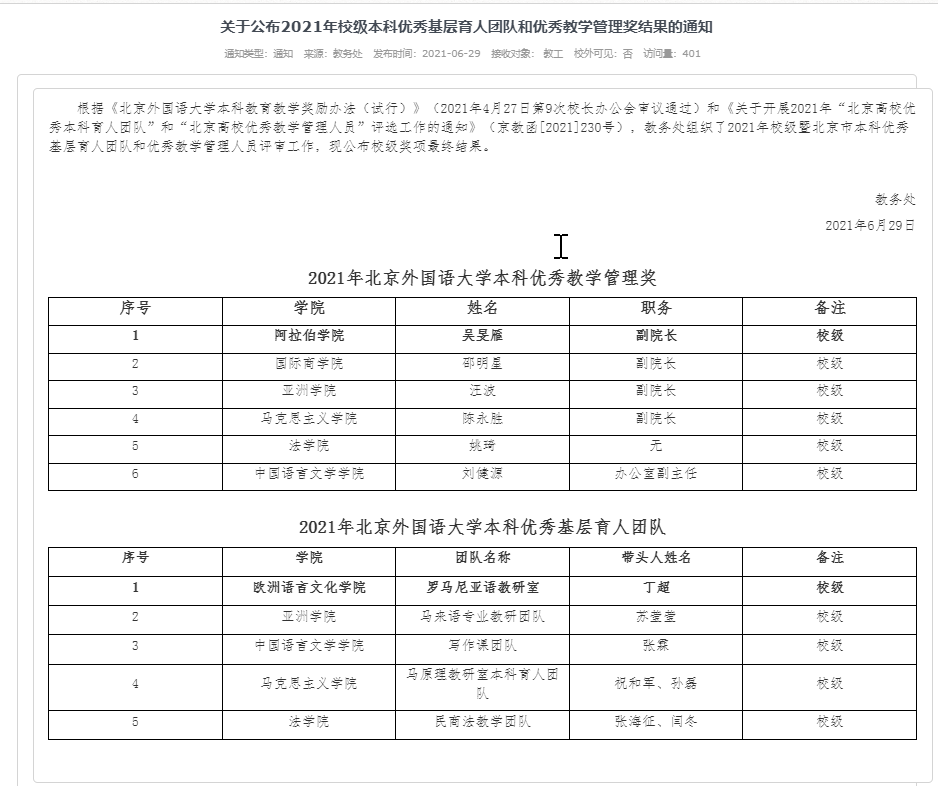 为深入贯彻落实习近平总书记关于教育和人才工作的重要论述,根据《kaiyun开云官方网站本科教育教学奖励办法(试行)》(2021年4月27日第9次校长办公会审议通过)和《关于开展2021年“北京高校优秀本科育人团队”和“北京高校优秀教学管理人员”评选工作的通知》(京教函[2021]230号),教务处组织了2021年校级暨北京市本科优秀基层育人团队评审工作,kaiyun官网原理教研室获2021年kaiyun开云官方网站本科优秀基层育人团队。