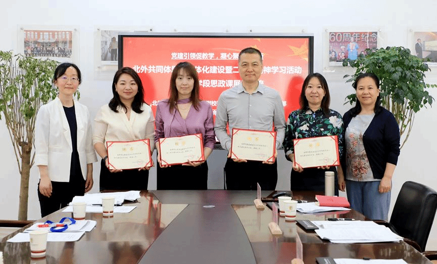 北外附校党总支书记张继军为北外马院专家一行颁发了指导专家聘书,专家在现场听课后对附校的思政课教师进行了点评和指导。