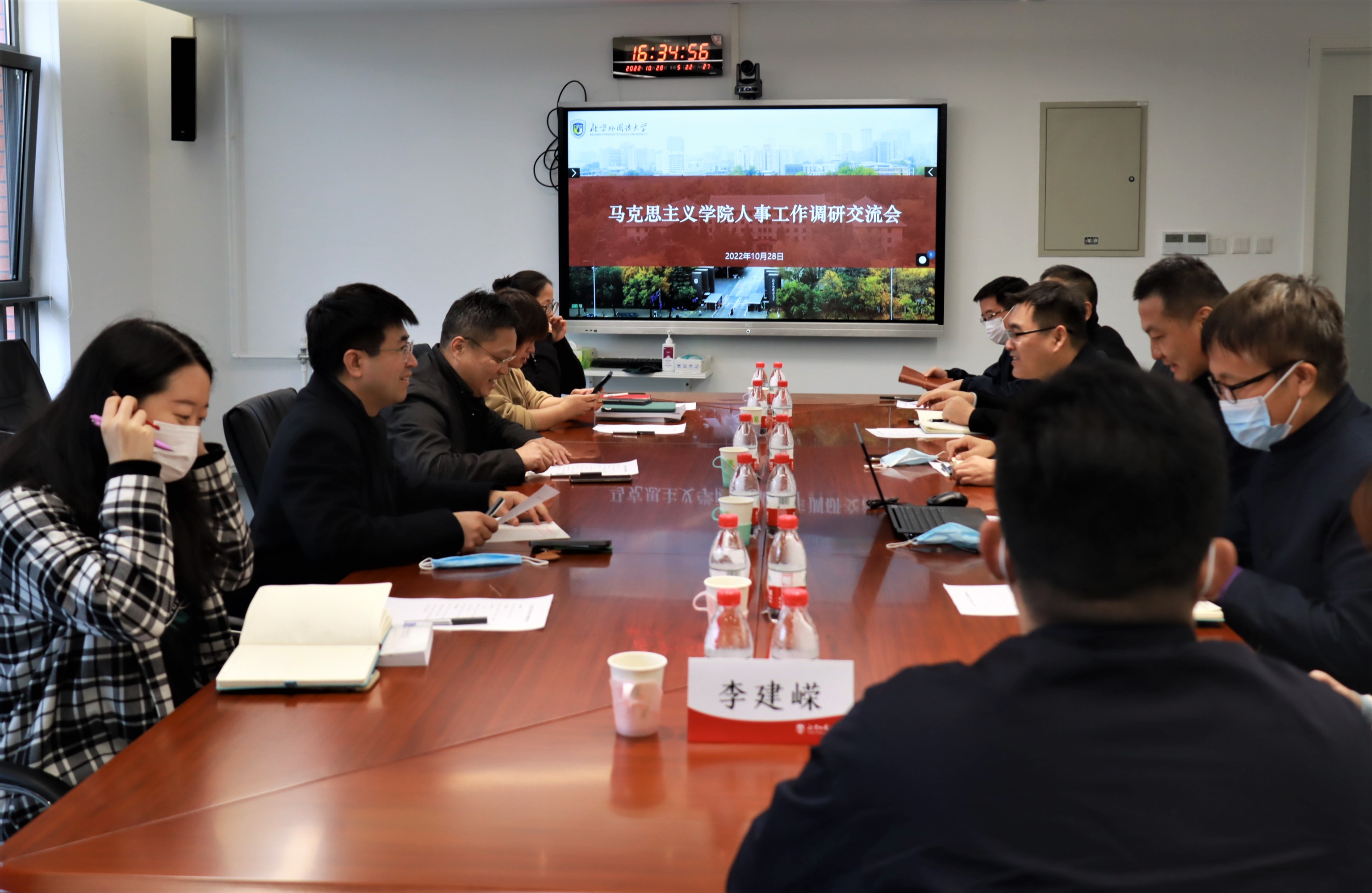 kaiyun开云官方网站领导班子对人事处一行到学院调研交流表示热烈欢迎,感谢学校人事处对学院工作的支持。院长韩强首先介绍了学院师资队伍建设的整体情况,汇报了学院在思政课教师职称评聘、教学科研岗位教师招聘、人才引进、学科建设、青年教师成长等方面的工作计划和瓶颈,并对预聘制教师及高层次人才管理事宜提出建议。党总支书记祝和军结合近年来学院工作,汇报了在协调预聘制教师、校内遴选思政课教师和高层次引进人才的工作任务、考核及福利待遇等方面遇到的问题。副院长陈永胜、孙磊就思政课教师职称“单列计划,单设标准,单独评审”进行补充汇报。教师代表左高山、王曼倩、李建嵘分别分享了对博士后考核、教学科研人员职称评聘制度及新入职教师发展等方面的看法和建议。