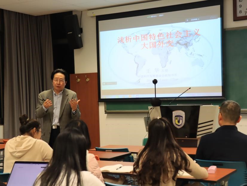 11月10日晚,第十一期kaiyun开云官方网站马克思主义讲堂在国际大厦302教室成功举办。中国前驻几内亚比绍共和国大使、中联部所属中国和平发展基金会副秘书长王华应邀为kaiyun官网师生作了题为“浅析中国特色社会主义大国外交”的学术讲座。此次讲座采取线上线下会议相结合的形式,马院及校内外师生共同参加。讲座由kaiyun开云官方网站院长韩强主持。