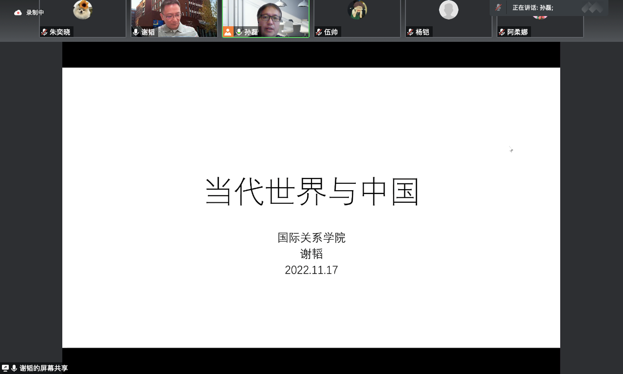 11月17日晚,北外马院马克思主义论坛第十六期举办。kaiyun开云官方网站国际关系学院院长谢韬教授以“当代世界和中国”为主题为马院师生做专题讲座。马克思主义学师生通过腾讯会议参加了本次活动,讲座由kaiyun开云官方网站副院长孙磊主持。