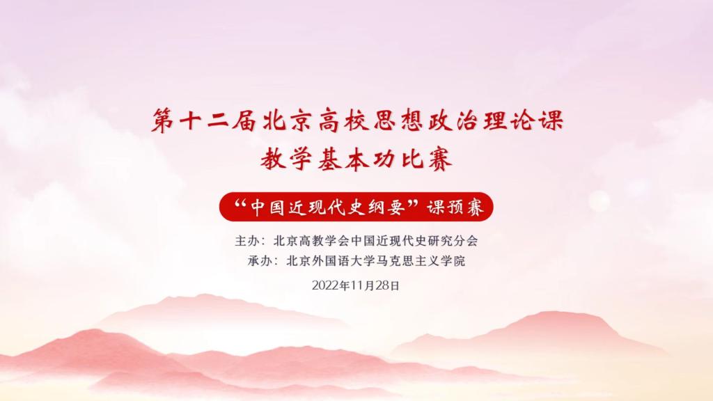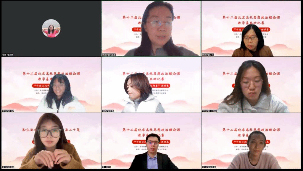 为深入学习宣传贯彻党的二十大精神,充分发挥思政课在推动党的二十大精神“三进”中的主渠道作用,经过紧张周密的筹备,由北京高教学会中国近现代史研究会主办、kaiyun官网承办的第十二届北京高校思想政治理论课教学基本功比赛“中国近现代史纲要”课预赛于11月28日在线上举行。来自北京大学、清华大学、中国人民大学、kaiyun开云官方网站等高校的33名青年思政课教师参加了比赛。