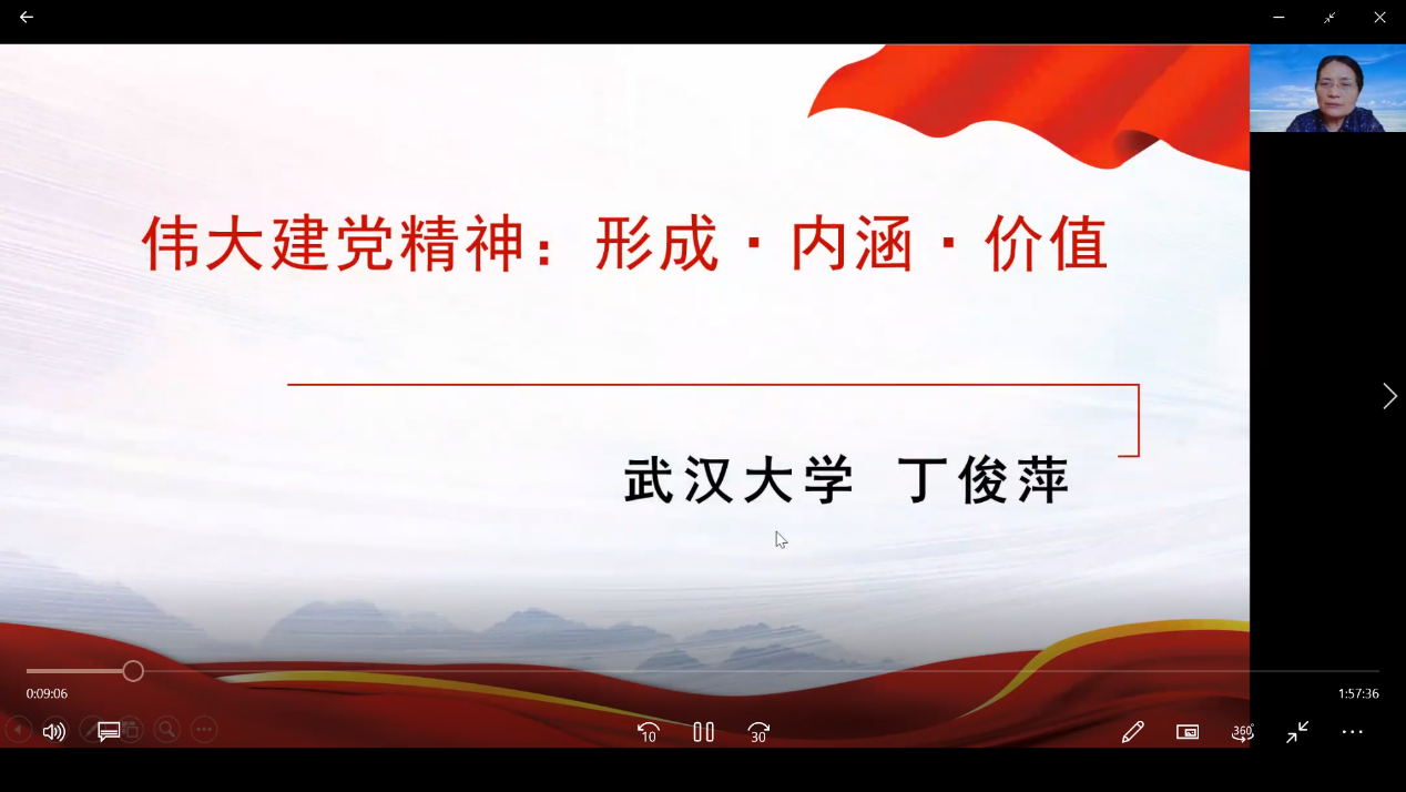 最后,丁俊萍结合习近平总书记在不同时期不同场合的讲话,呼吁广大师生弘扬伟大建党精神,深入学习习近平新时代中国特色社会主义思想,推进新时代党的建设新的伟大工程,勇于进行具有许多新的历史特点的伟大斗争,走好新时代的赶考之路。