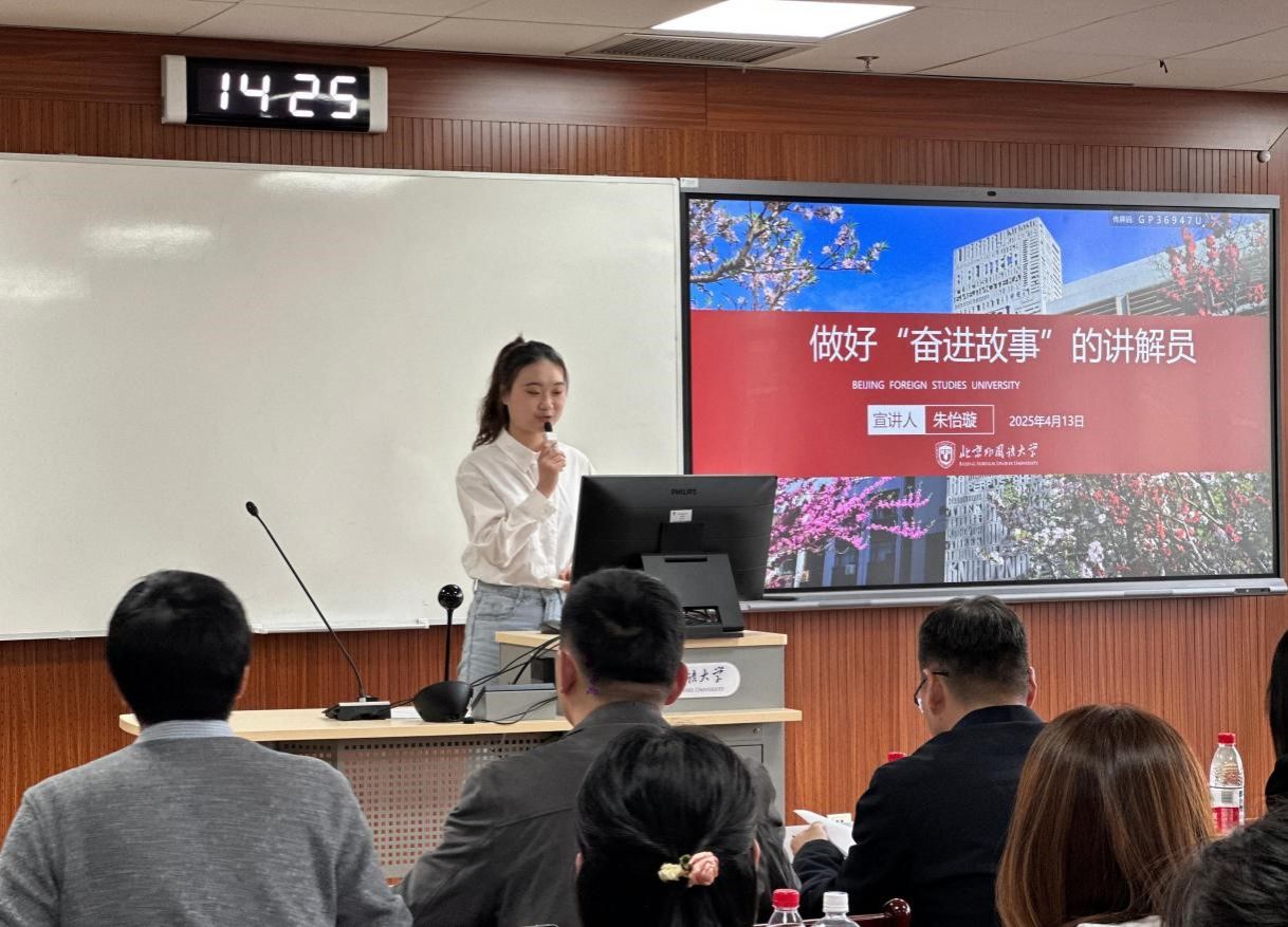 朱怡璇同学以《做好“奋进故事”讲解员》为题,结合其作为校史馆讲解员的亲身经历,呼吁青年学子积极投身于文化交流的前沿。