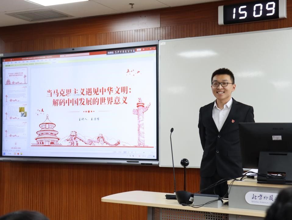 王湛博、李子芳、常威同学以《当马克思主义遇见中华文明:解码中国发展的世界意义》为题,剖析马克思主义与中华文明的内在联系。他们探讨了马克思主义在中国的本土化发展及其对中国发展的深远影响,展现了理论自信与文化传承的深刻思考,为理解中国发展道路提供了独特的视角和深刻的见解。