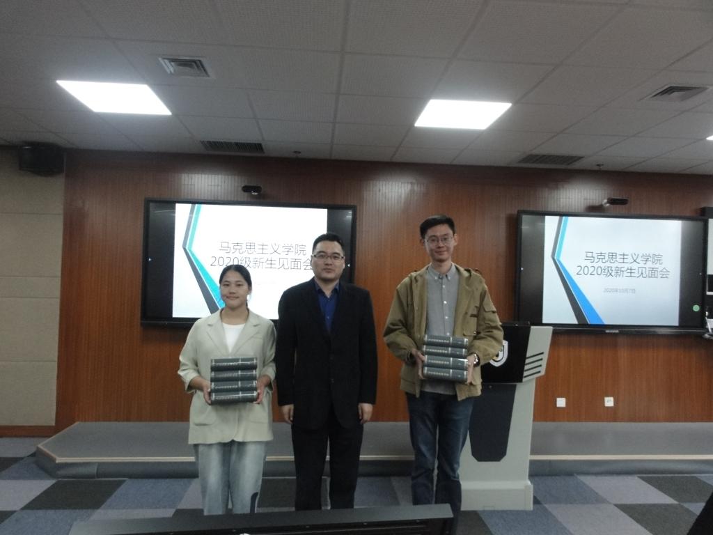 会议最后进行了隆重的赠书活动。祝和军老师向全体新生赠送了《马克思恩格斯选集》,鼓励大家读原著、学原文,悟原理。