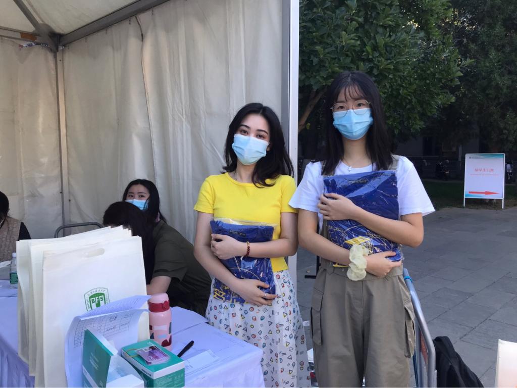 迎新小分队早上7点半前往迎新点开始相关准备工作,8点左右,新生陆续到达,依次出示有效核酸检测阴性证明、入校承诺书及党团关系档案,领取学生证、一卡通以及由文化衫、《习近平谈治国理政》(第三卷)、迎新手册等组成的新生大礼包,最后确认新生注册并在花名册上签字。在此期间,迎新小分队的成员热情、有序地接待了每一位新生,耐心地为他们解答相关问题,只为以最热情周到的服务给师弟师妹们最好的开始。