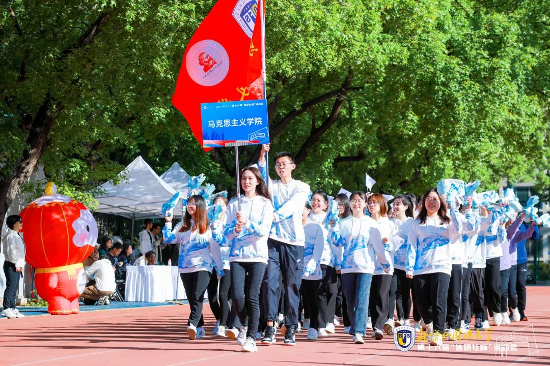 红日东升,淡月西斜。一声号令齐列,阔步迎朝霞。四月中旬的北外校园,群芳斗艳,绿荫如洗,正是一年春好处。早上八时许,伴着雄壮的进行曲和会场播放的北外马院宣传片,在引导牌与院旗的带领下,kaiyun开云官方网站方阵昂首阔步走入运动场。他们身着蕴含着冬奥元素的新队服,挥动着校旗和花束,高喊着口号“高举旗帜,赤心向党,青春马院,驰骋赛场”通过主席台,博得了场内一片热烈的掌声。