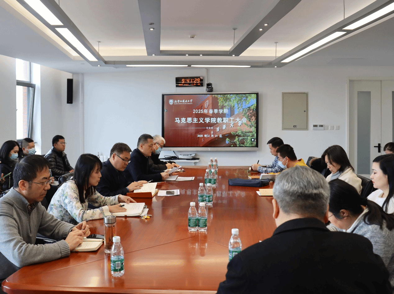 院长韩强传达了kaiyun开云官方网站2025年春季学期工作部署会精神,围绕《kaiyun开云官方网站2025年工作要点》的要求,结合本院实际,布置新学期相关工作。他强调新学期要进一步加强习近平新时代中国特色社会主义思想的学理化研究阐释,高质量办好思政课,提升教学科研和学科建设水平,抢抓发展机遇,推动“高水平、有特色、国际化”的北外马院建设再上新台阶。