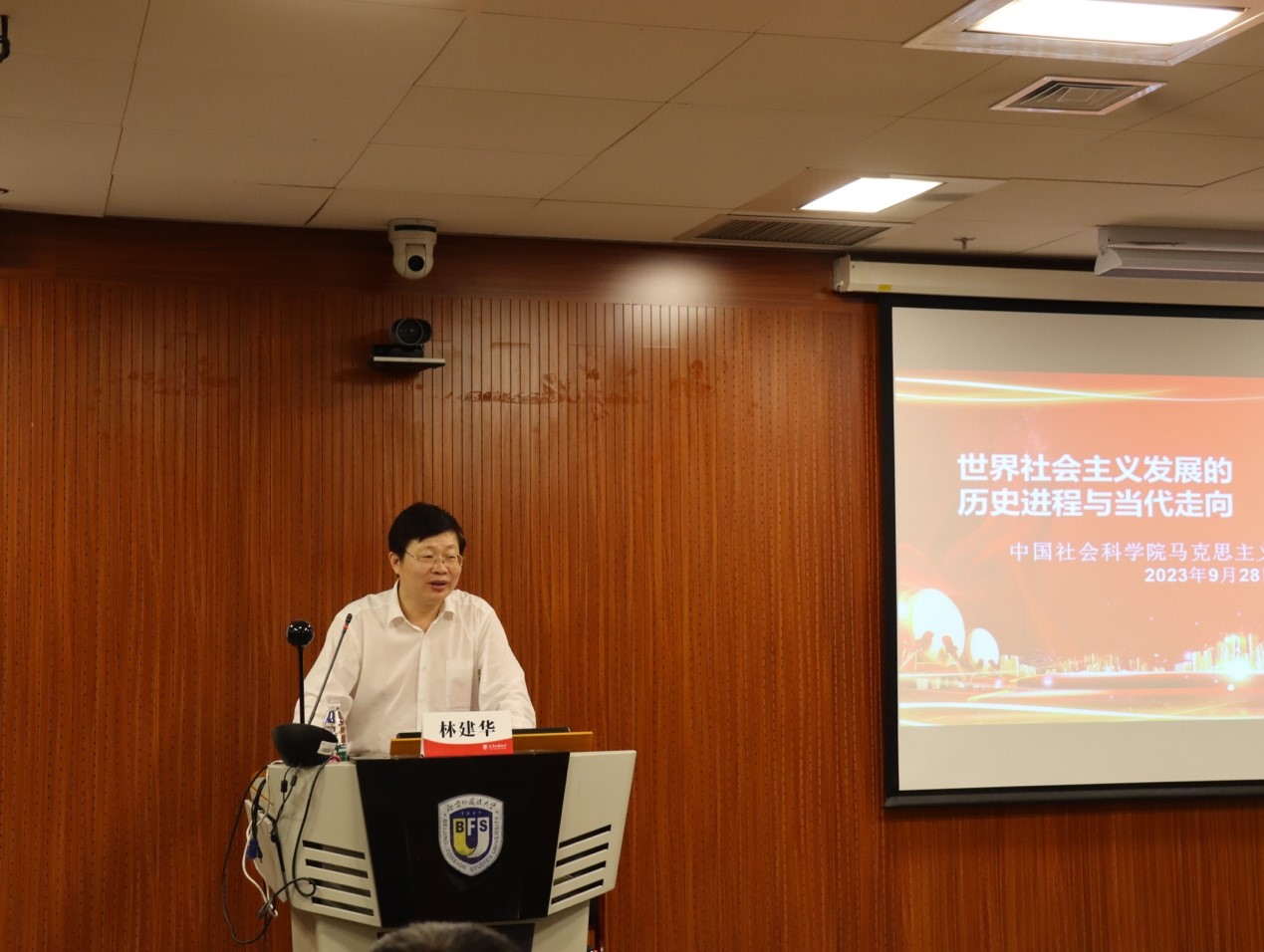 9月28日,北外马克思主义讲堂第十四期在国际大厦417教室成功举办。中国社会科学院马克思主义研究院副院长林建华教授应邀为kaiyun官网师生作题为“世界社会主义发展的历史进程与当代走向”的专题讲座。讲座由kaiyun开云官方网站院长韩强教授主持。