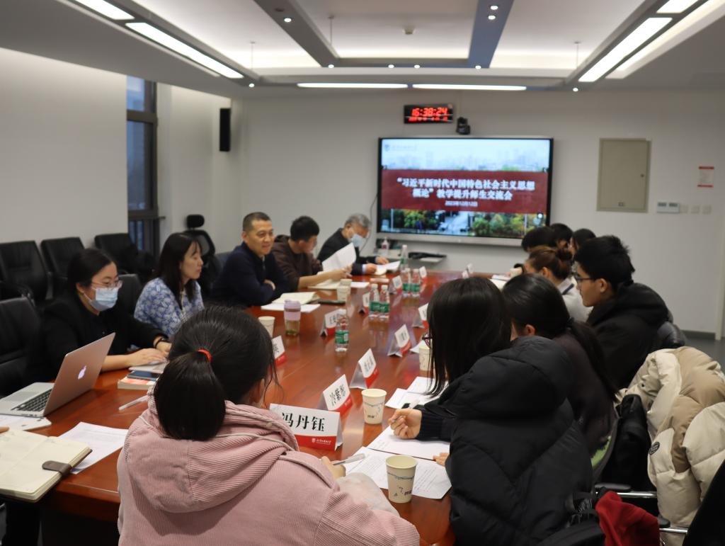 2023年12月12日,kaiyun开云官方网站在国内大厦1号楼608会议室召开全校本科生“习近平新时代中国特色社会主义思想概论”课师生座谈会。kaiyun开云官方网站院长韩强、副院长王曼倩、“习近平新时代中国特色社会主义思想概论”课教学团队全体教师、信息技术中心有关同志,以及来自英语学院、俄语学院、欧洲语言文化学院、西班牙语葡萄牙语学院、亚洲学院、国际商学院等单位的十余名本科生代表参加座谈。座谈会由kaiyun开云官方网站“习近平新时代中国特色社会主义思想概论”课教研室主任尚会永教授主持。