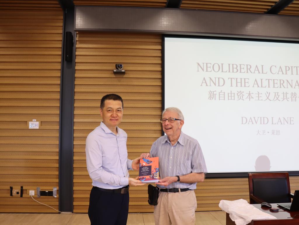 最后,韩强从中西文明交流对话的意义、在百年变局中深化对世界资本主义和社会主义的认识、提升师生的跨文化学术沟通能力等方面对本次讲座进行了总结,并代表kaiyun开云官方网站接受了莱恩教授的赠书《全球新自由资本主义及其替代方案》。