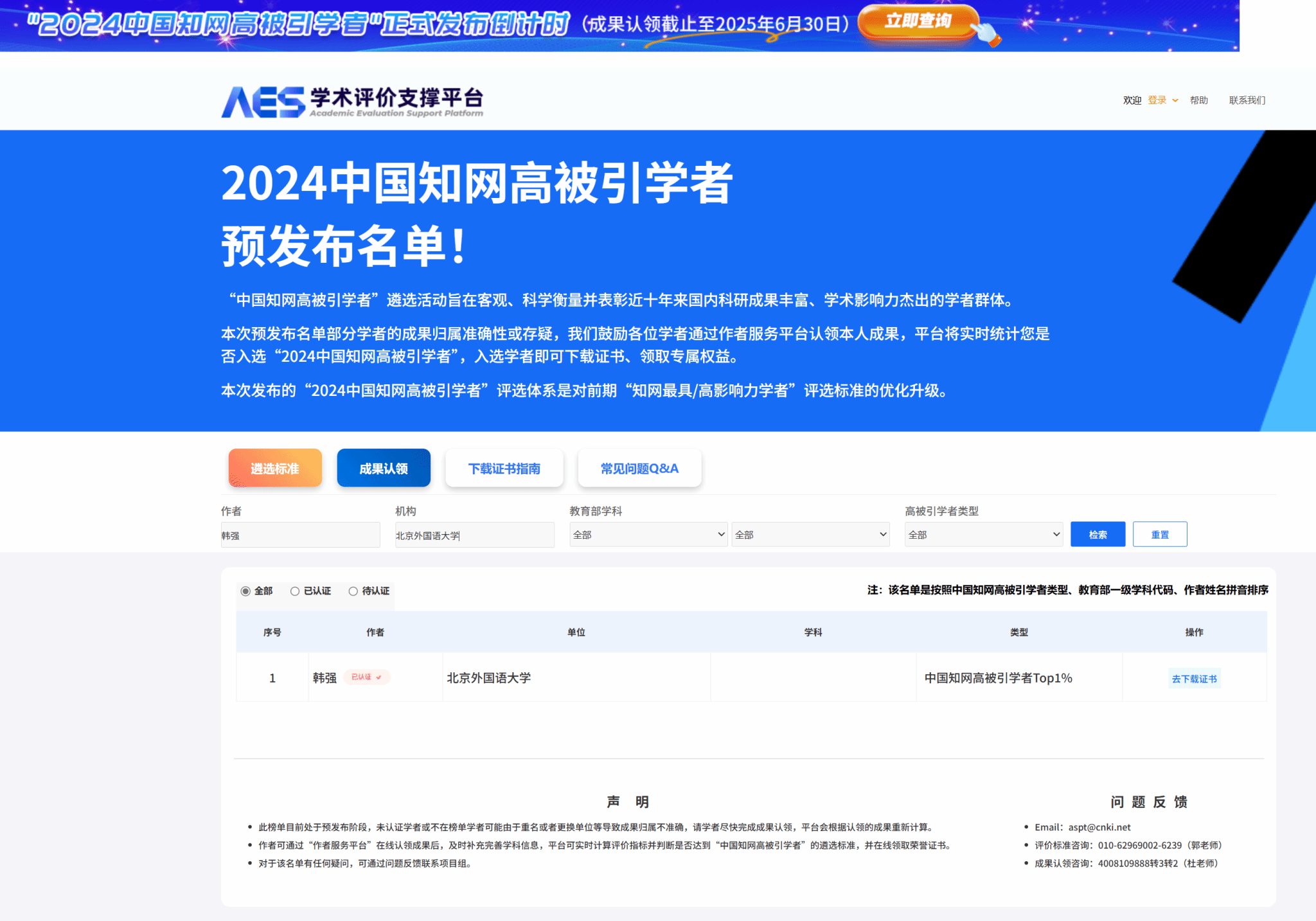 “中国知网高被引学者”遴选活动旨在客观、科学衡量并表彰近十年来国内科研成果丰富、学术影响力杰出的学者群体。