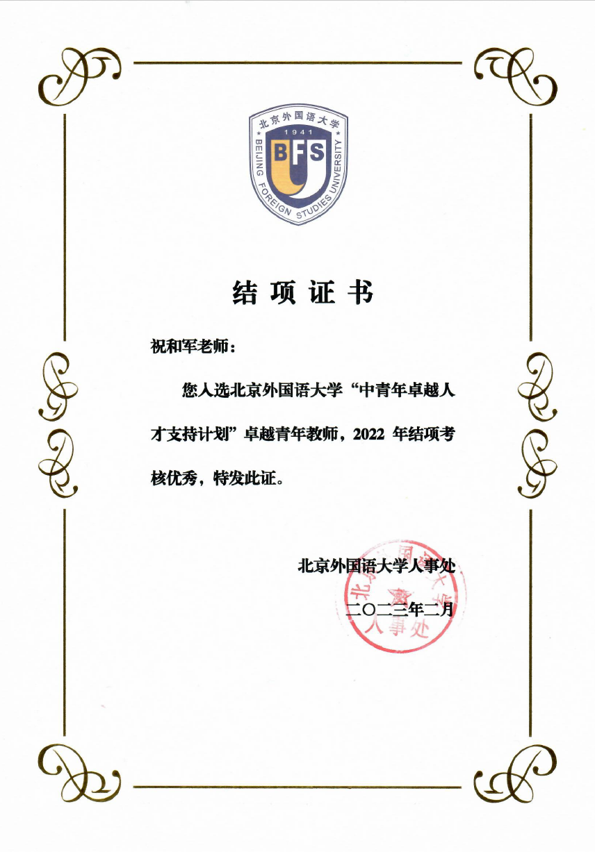 kaiyun官网祝和军副教授2019年入选kaiyun开云官方网站“中青年卓越人才支持计划”卓越青年教师,2022年结项考核为优秀。