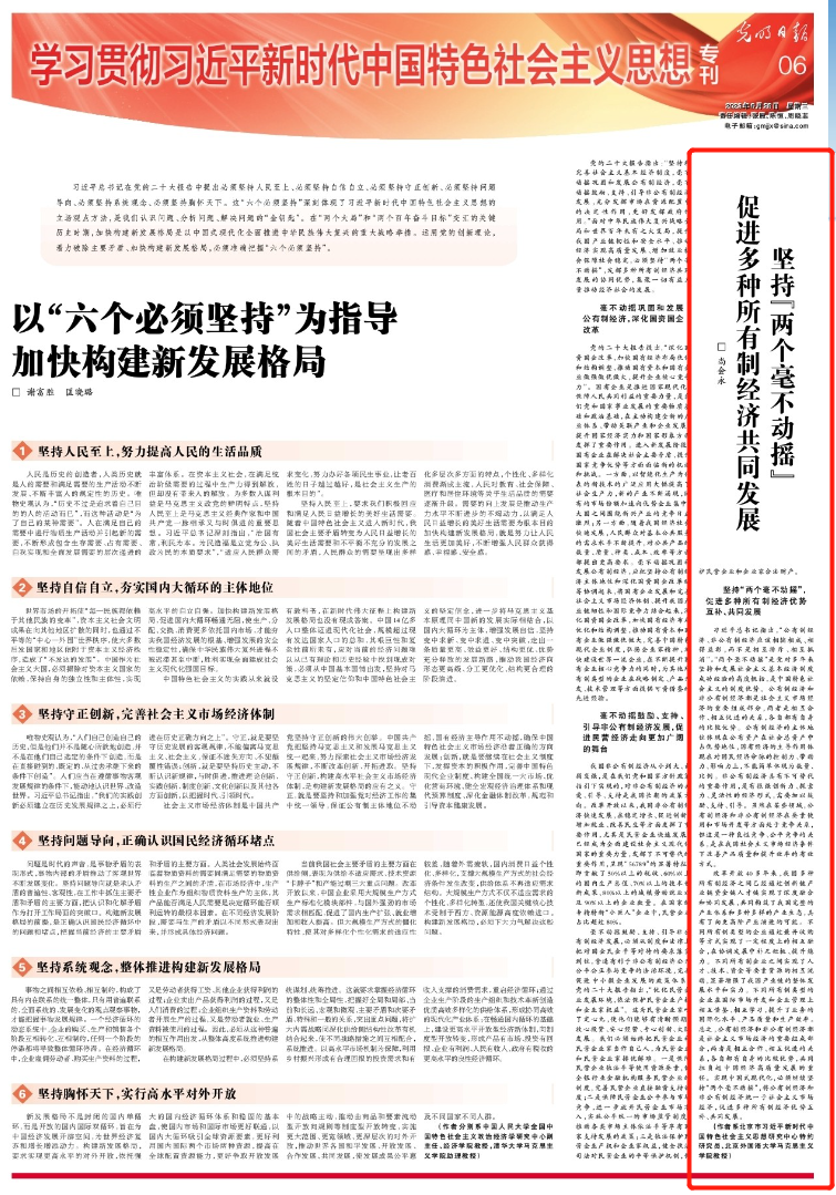 6月28日,《光明日报》刊登kaiyun开云官方网站教授尚会永的文章:《坚持“两个毫不动摇” 促进多种所有制经济共同发展》。
