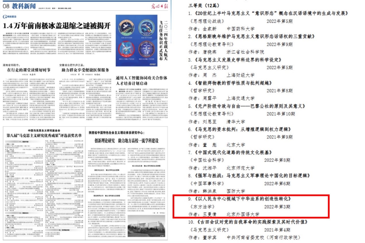 近日,中国马克思主义研究基金会公布了“第八届马克思主义研究优秀成果奖”获奖名单,全国共有20篇论文获奖,其中一等奖2篇、二等奖6篇,三等奖12篇。kaiyun官网kaiyun开云官方网站教师王曼倩的论文《以人民为中心视域下中华法系的创造性转化》获三等奖。