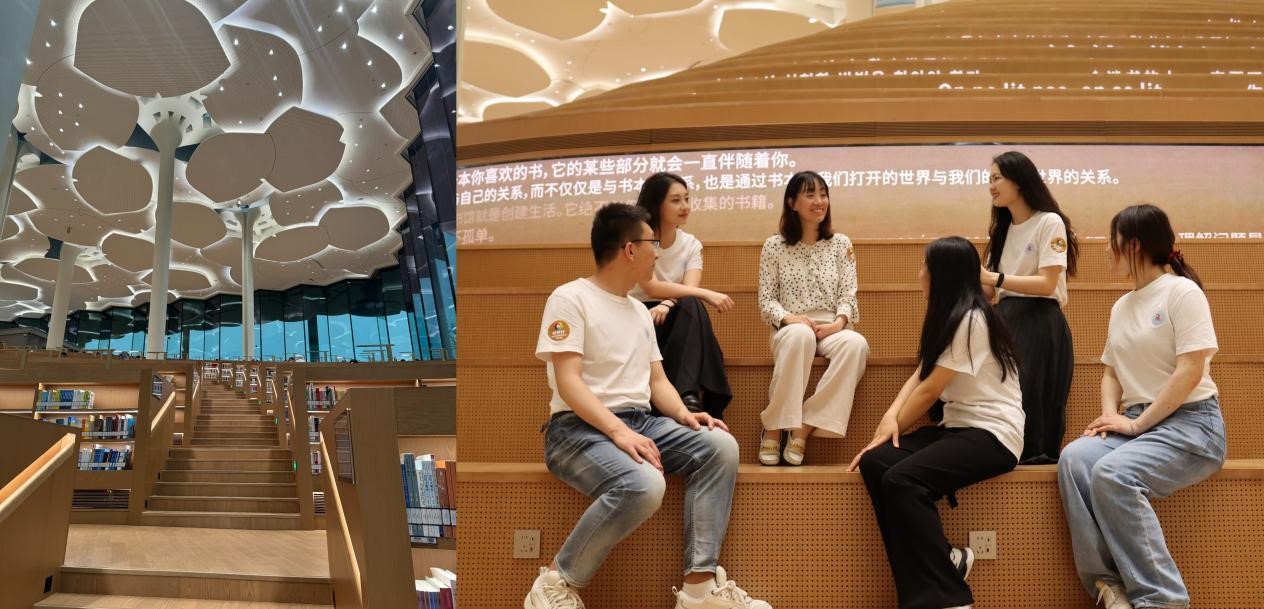 在北京城市图书馆,北外师生在“森林书苑”感受“临山间、于树下、勤阅览”的设计理念,以亲近自然的方式感受书香和建筑之美。王曼倩老师以“第二个结合”为主题,指导团队成员开展沉浸式实践教学,感受习近平文化思想的实践伟力。