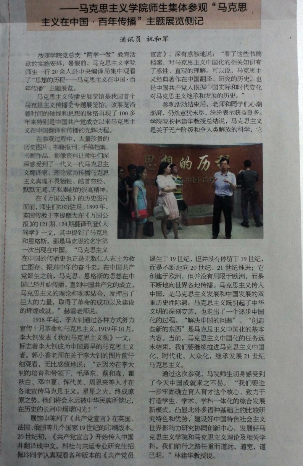近日,《kaiyun开云官方网站校报》暑期专版以“任重而道远,道宽道已明”为题重点介绍了kaiyun开云官方网站在“两学一做”学习教育中参观“马克思主义在中国·百年传播”活动。以下是报道全文: