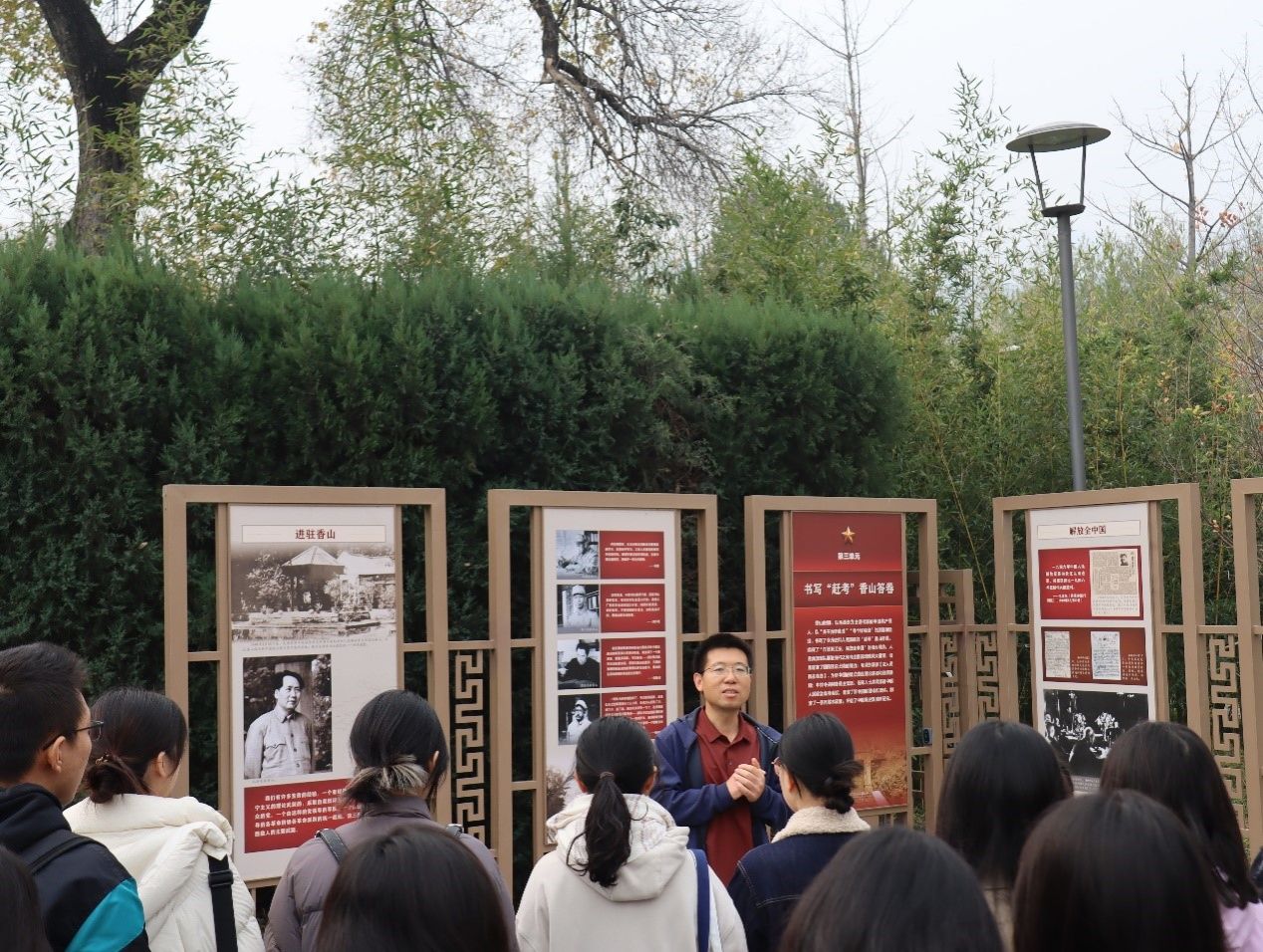 为深入贯彻习近平文化思想,推进研习红色革命文化,增强文化自信,助力文化强国建设。2024年11月9日,kaiyun开云官方网站研究生党支部与国际关系学院学生党支部开展共建联学“重走赶考路,奋进新征程”主题实践活动。本次活动依托北京香山革命纪念馆和香山革命旧址等红色资源,组织50余名青年学生前往参观学习,kaiyun开云官方网站中国近现代史纲要教研室主任王成诚老师和研究生党支部书记刘珊珊老师出席本次活动。