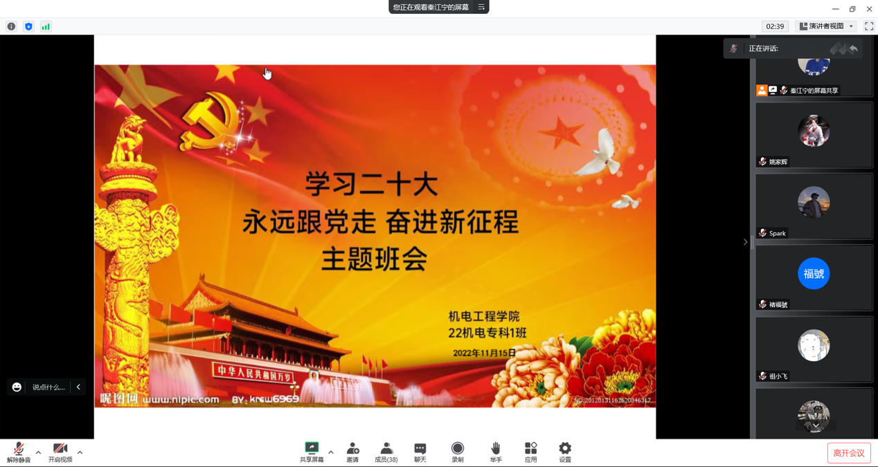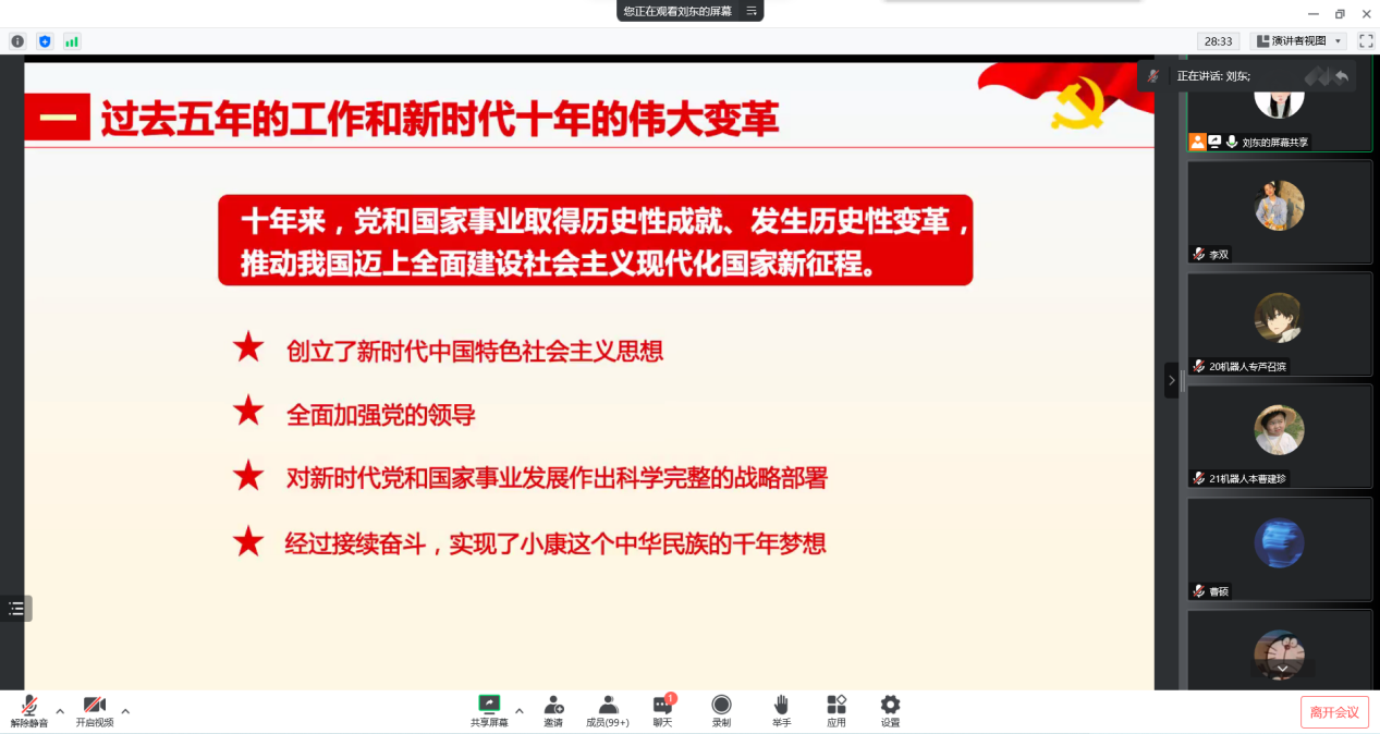 党的二十大胜利召开以来,全院自上而下迅速掀起学习宣传贯彻党的二十大精神的热潮,党团干部带头领学,开展专题宣讲,全院各团支部充分依托青年大学习、智慧团建等载体,集中开展3次主题团课和1次专题组织生活会,确保学习活动全覆盖。