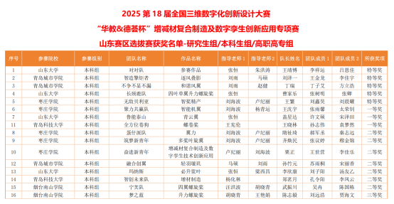 近日,由全国三维数字化创新设计大赛组委会主办,山东大学机械工程学院承办的2025第18届全国三维数字化创新设计大赛“华教&德荟杯”增减材复合制造及数字孪生技术创新应用专项赛(山东赛区)在山东大学顺利举办。本届“华教&德荟杯”增减材专项赛以“智创融合・孪生赋能”为主题,旨在培养大学生创新创造精神与实践能力,提升大学生的创新设计、系统设计、实践动手等能力,携手打造具备数智素养,有创意想法、有创新能力、有创造精神、有创业思维的新质人才。beat365官网beat365官方网站学子斩获特等奖一项、一等奖一项、二等奖三项。